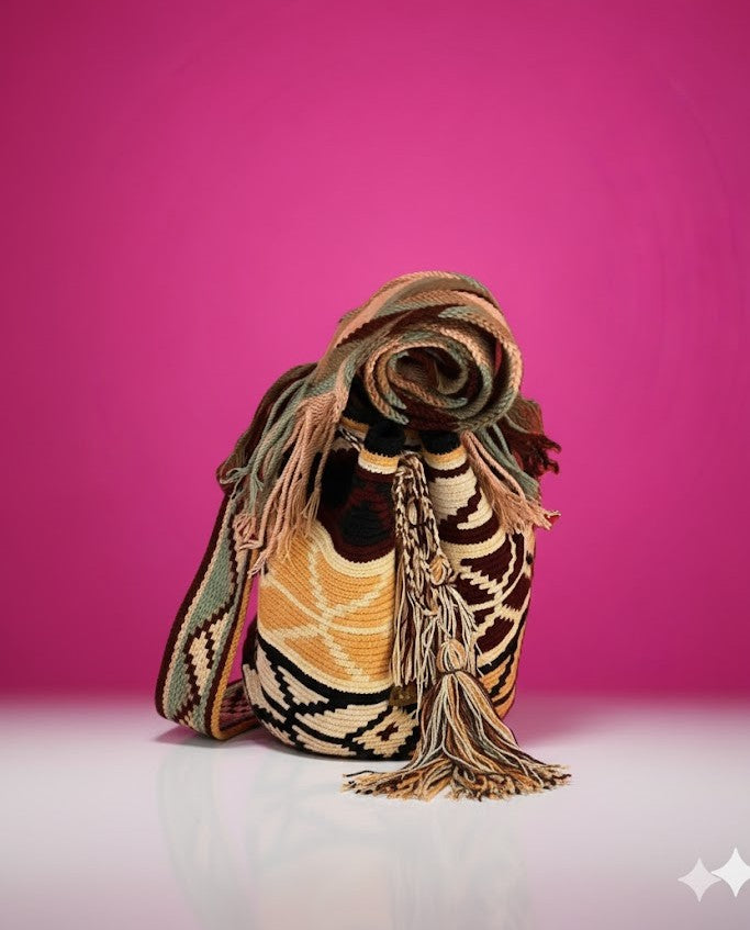 Each Wayuu bag we offer is a labor of love, meticulously created by skilled artisans. Depending on its intricacy, crafting a single bag can take up to five days of dedication and expertise. The process begins with a single thread, which is transformed into thicker yarn, setting the foundation for these extraordinary creations. The bags are then crocheted as a single, seamless piece, with the shoulder straps expertly added in the final stages.